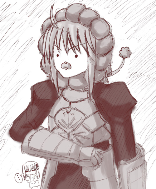 なんかすっごーい時間経ってしまいましたけれども。 ホントにゴメンナサイ(´・ω・`) 線画は出来てたんだけどね、取り込む時間が無かったのよー、と言い訳をしてみる('A`) なんかそれだけじゃ申し訳ないから、セピアダブルトーンだけど一応塗ってみた。 では↓続きドゾー。 Commentsくフっ・・・Posted by 仲山晄 2007/04/22(Sun) 13:01:59 EDIT Fateはよくわかんないんですけど、絵はいろんなところで見ます。(特に放課後)
